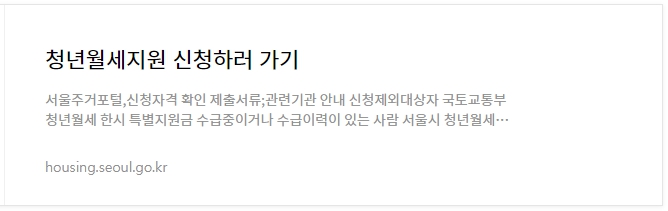 - ※ 23년 이전 서울시 청년월세지원 기 선정(수급) 자, 국토교통부 청년월세 한시 특별지원 선정(수급)자 및 23년 은평형 청년월세 선정(수급) 자는 지원 불가