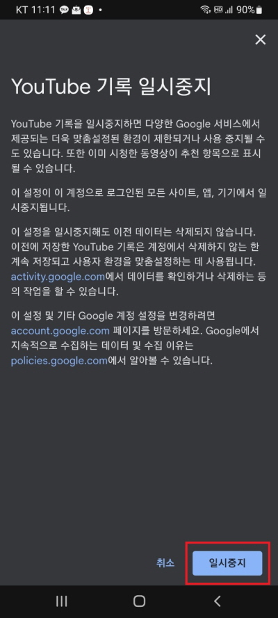 - 기록 저장 일시 중지하기