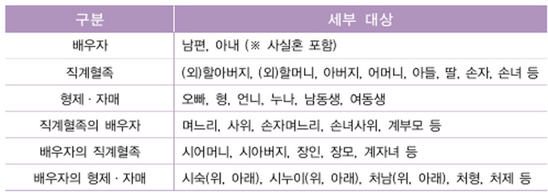 아래 가족 관계에는 활동지원서비스 제공이 불가하오니 참고하시기 바랍니다.