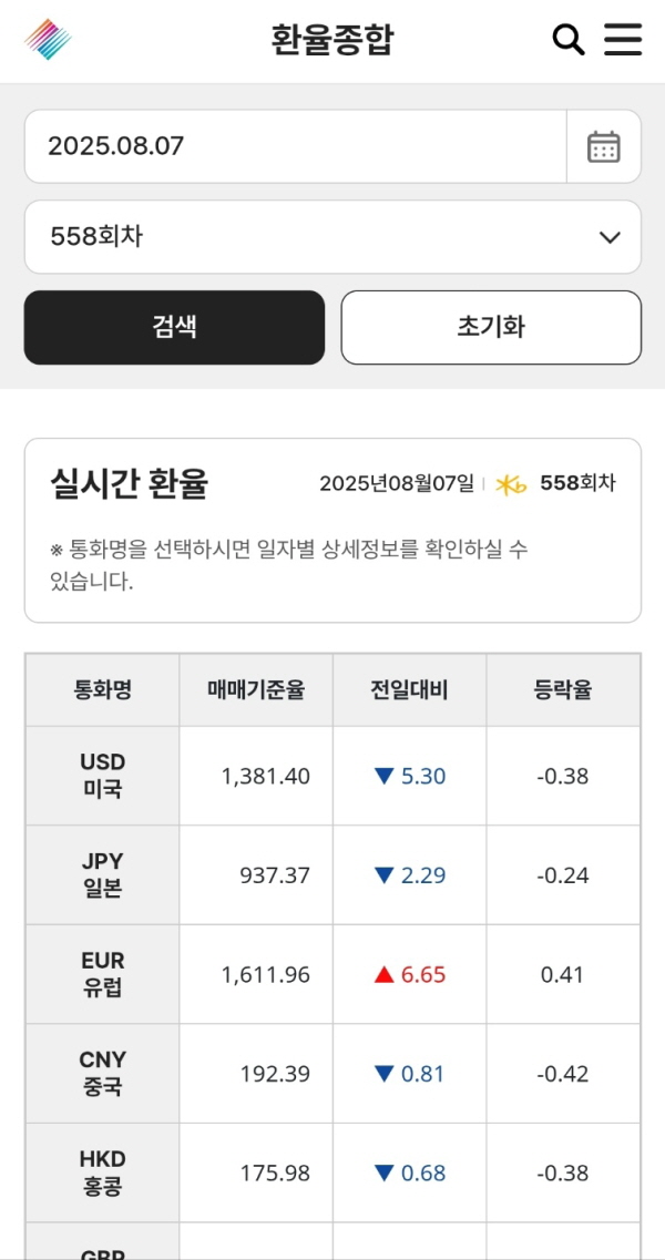 이 계산기에서는 실시간 환율확인 바로가기 기능이 있어서 편리하게 사용하실 수 있어요. 대부분 신용카드로 결제를 하실 텐데 매매기준율로 보셔도 되지만 신용카드사는 '송금 보낼 때'의 환율로 청구한다고 하니 참고하시기 바랍니다.