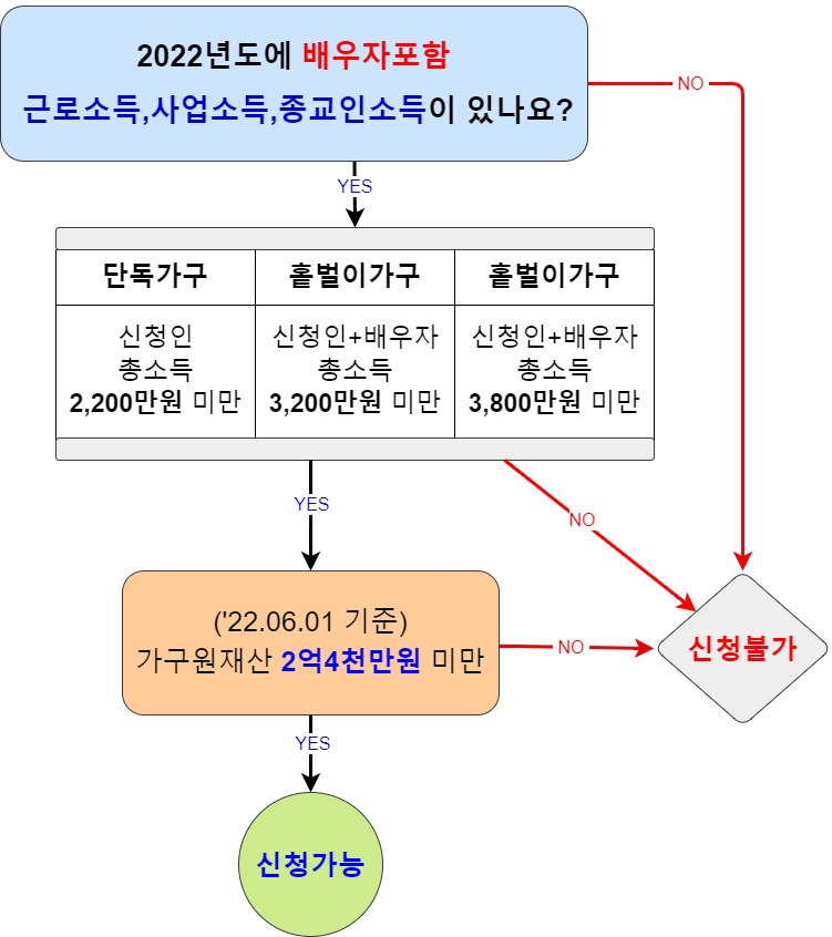 | 단독가구 | 배우자,18세미만부양자녀,70세이상직계존속이모두없음 | 4만~2,200만원 미만 |