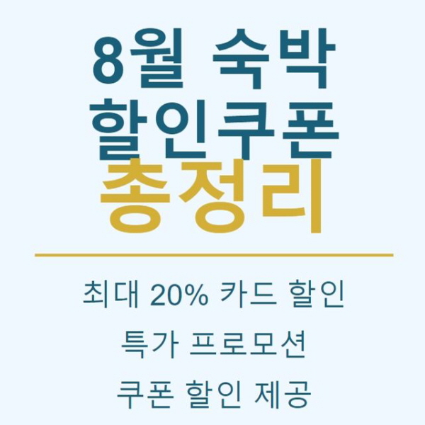 여름이 한창 기승을 부리는 8월 지치다 못해 피서여행을 계획 중이신가요? 아니면 벌써 가을 여행을 준비하고 계신가요? 오늘은 주요 숙박 예약 사이트들의 할인 정보를 한눈에 볼 수 있도록 정리해 봤습니다. 이 정보들을 잘 활용하시면 더욱 알뜰하고 즐거운 여행이 될 거예요!
