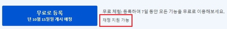 2). '무료로 등록' 버튼 옆의 '재정지원 가능' 링크를 클릭합니다.