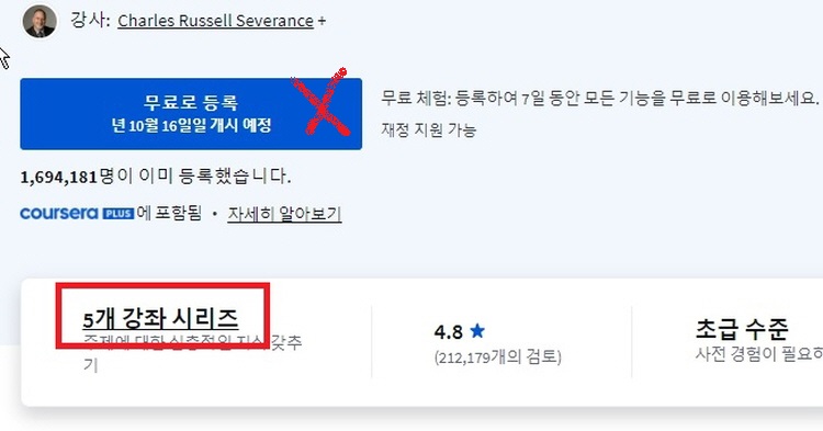 많은 코세라 강좌는 '청강' (Audit) 옵션을 제공합니다. 이 모드를 선택하면 강의 동영상과 읽기 자료에 무료로 접근할 수 있습니다.