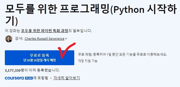 1). 강좌 페이지에서 '무료로 등록' (Register for free) 버튼을 클릭합니다.