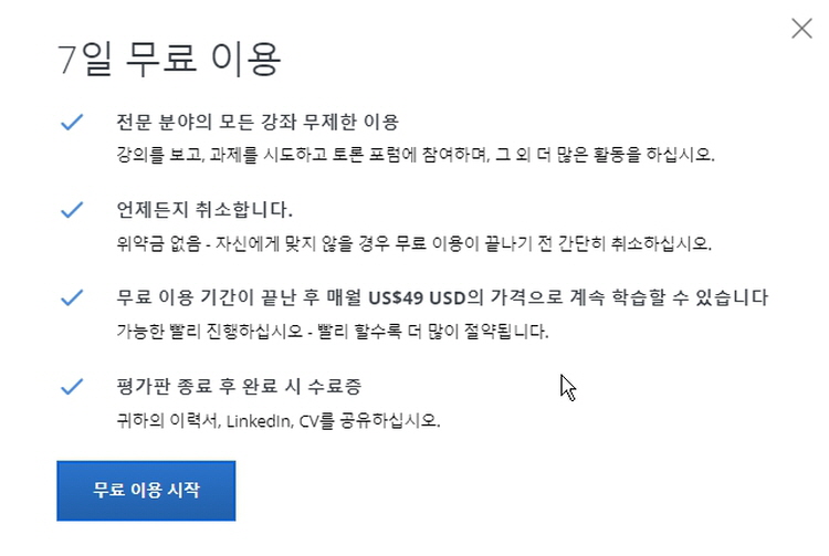 3). 7일 동안 모든 강좌 콘텐츠에 접근 가능합니다.