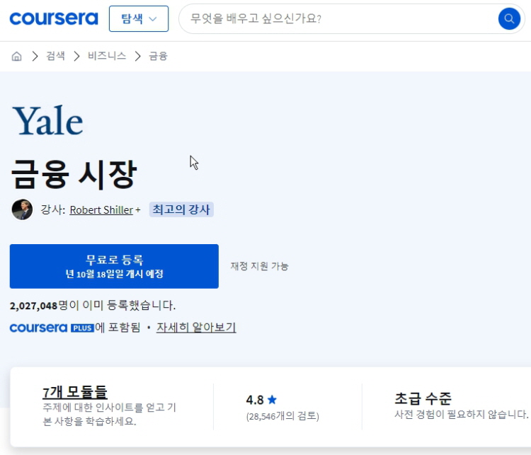 코세라 홈페이지에서 한글 제목으로는 검색이 안될수도 있기에 링크도 함께 기재해놓았습니다.