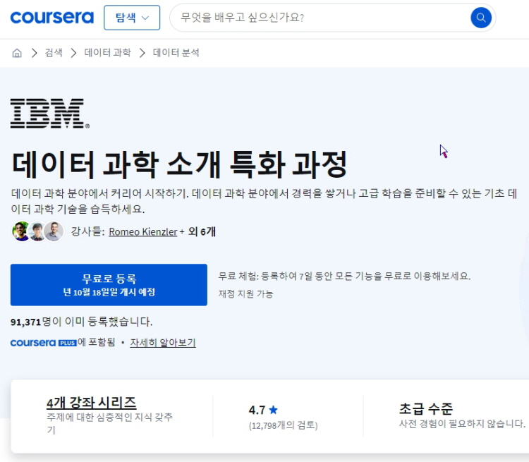 4. IBM의 "데이터 과학 입문" (Introduction to Data Science)